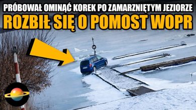 Mężczyzna, który próbował ominąć korek po zamarzniętym jeziorze, rozbił się o pomost ratowników WOPR.Kierowca BMW jechał z otwartymi drzwiami, bo…