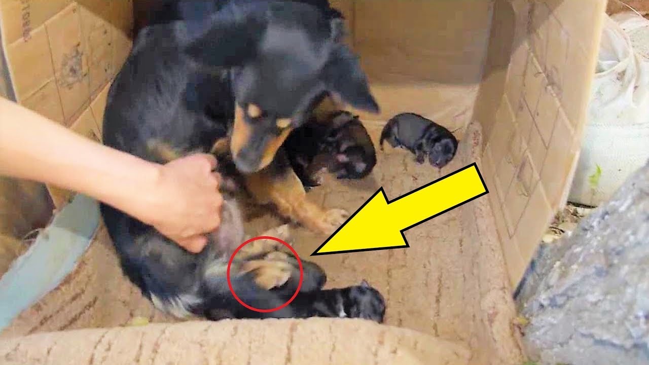 Rolnik znalazł psa ze szczeniakami, spośród których sterczała rączka! Na ten widok osłupiał!